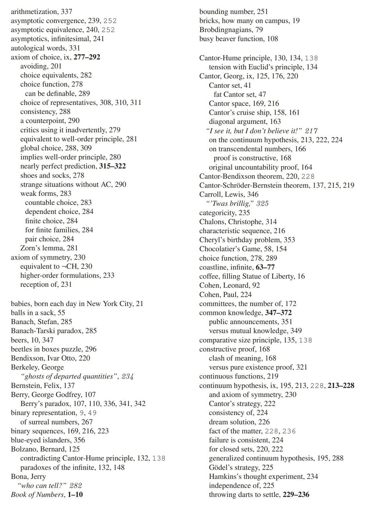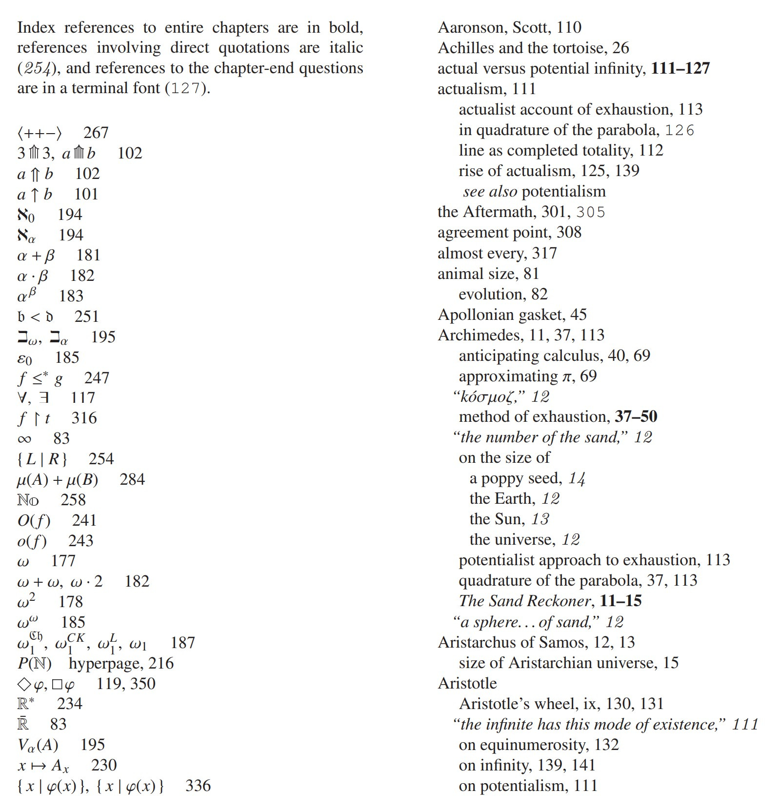 Come, let us explore infinity! We shall visit all my favorite paradoxes and conundrums. The ancient puzzles, confounding or intractable, will yield at times to our analysis. And what a joy it is to experience those Aha! moments—a flash of clarity lights the way out of the labyrinth. But alas, having escaped one maze, we shall often find ourselves immediately lost in another—a new paradox with new questions to answer. The puzzles of infinity are endless riddles nestled within one another.