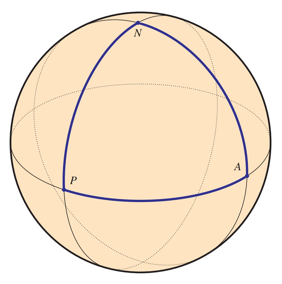 Let us explore a little more the differing character of non-Euclidean geometry. Spherical geometry, for example, has positive curvature, and part of what this means is that if one selects a point on the sphere and draws circles of increasing radius on the surface of the sphere, then the circumferences of these circles do not grow quite as fast as they do in the Euclidean plane. The circles are bent in slightly because they lie in the surface of the sphere. The formula for the circumference, therefore, is no longer 2πr, but rather something less. The circumference of a circle in spherical geometry is less than expected in Euclidean space; there are simply fewer locations within a given distance of you in spherical geometry than in Euclidean space.